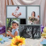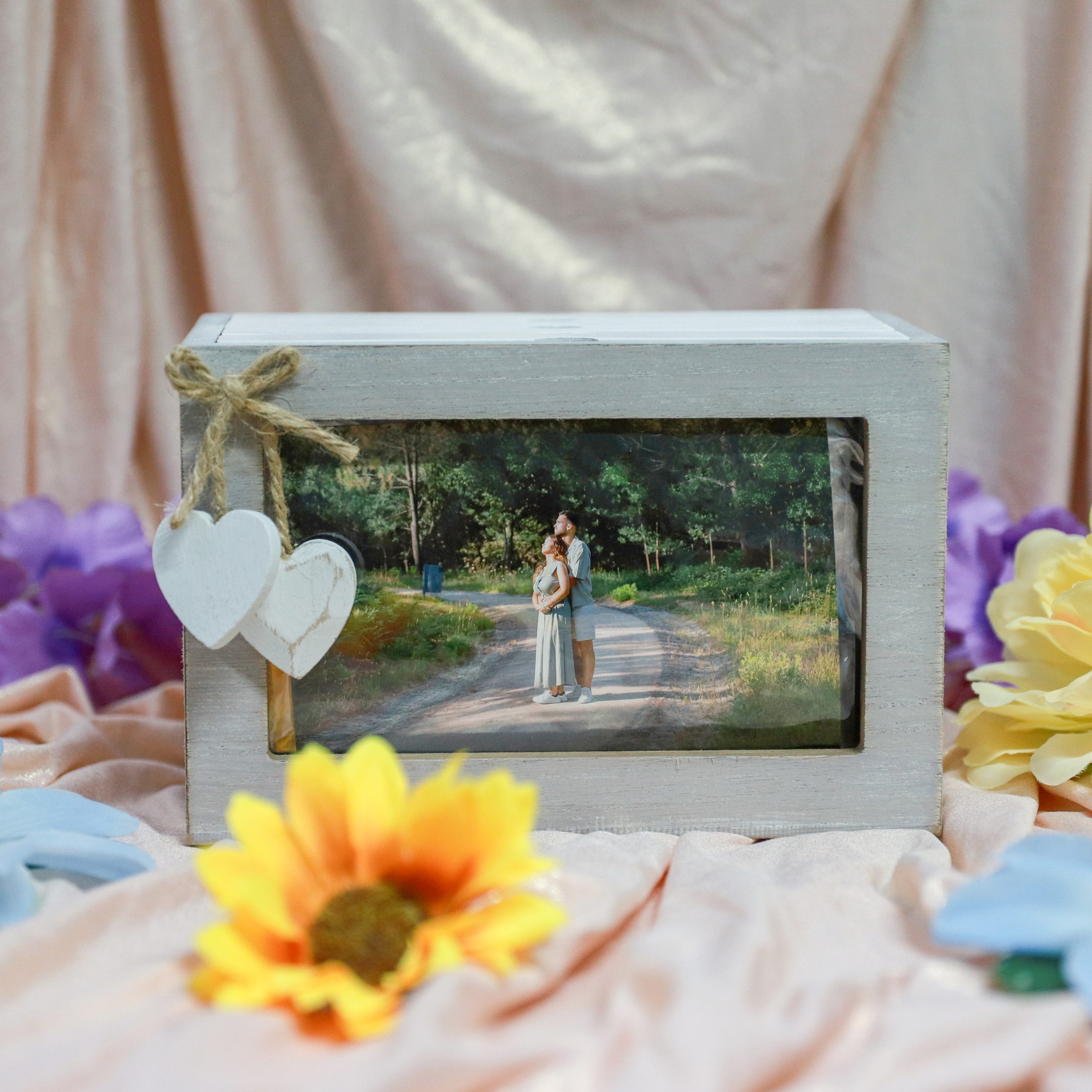 – Caixa em madeira para colocar 96 fotos do tamanho 10x15cm.