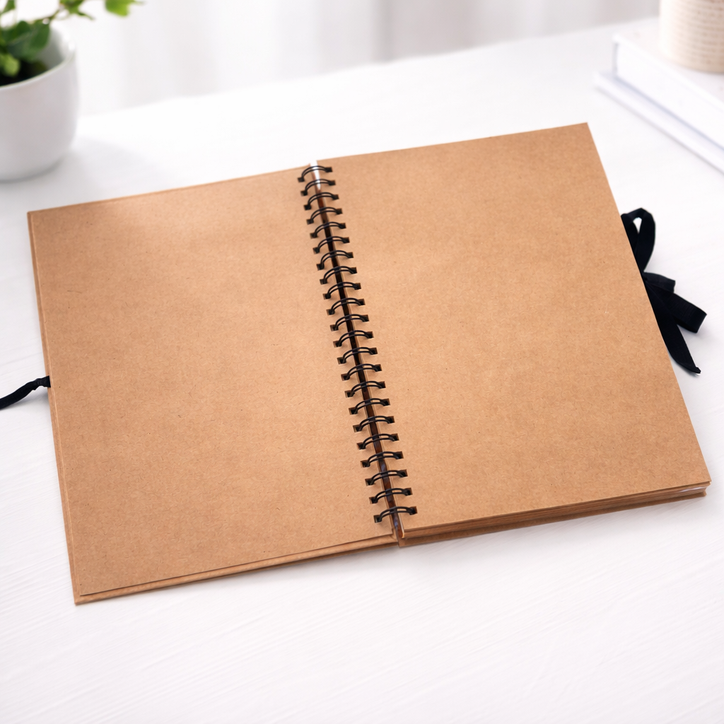 O Álbum scrapbook tem um design mais moderno para álbum parece um caderno com um laço para poder guardar as suas fotos.