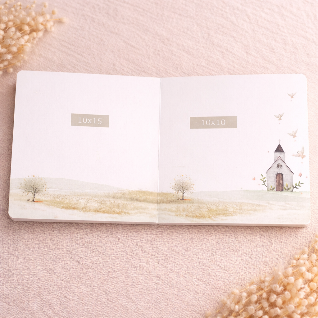 O Desdobrável de Comunhão é perfeito para guardar as mensagens e desejos de familiares e amigos, será uma recordação única e cheia de emoções para toda a vida.