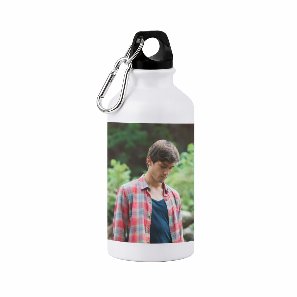 Garrafa de alumínio térmica de 400 ml com mosquetão que pode ser personalizada a sua escolha por uma foto, uma fase ou ate um simples nome.