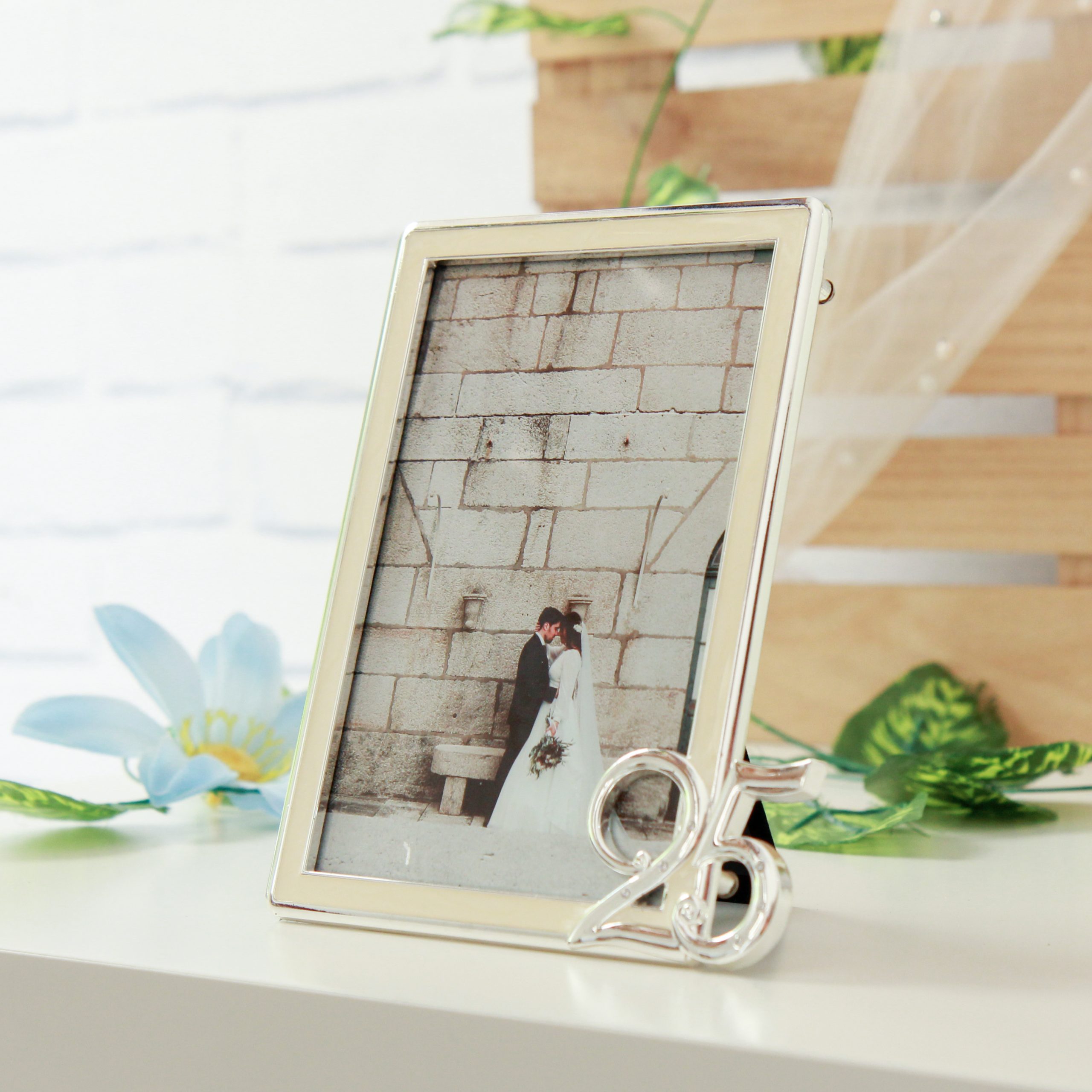 – Moldura de metal com o número 25 com brilhantes suaves e elegantes