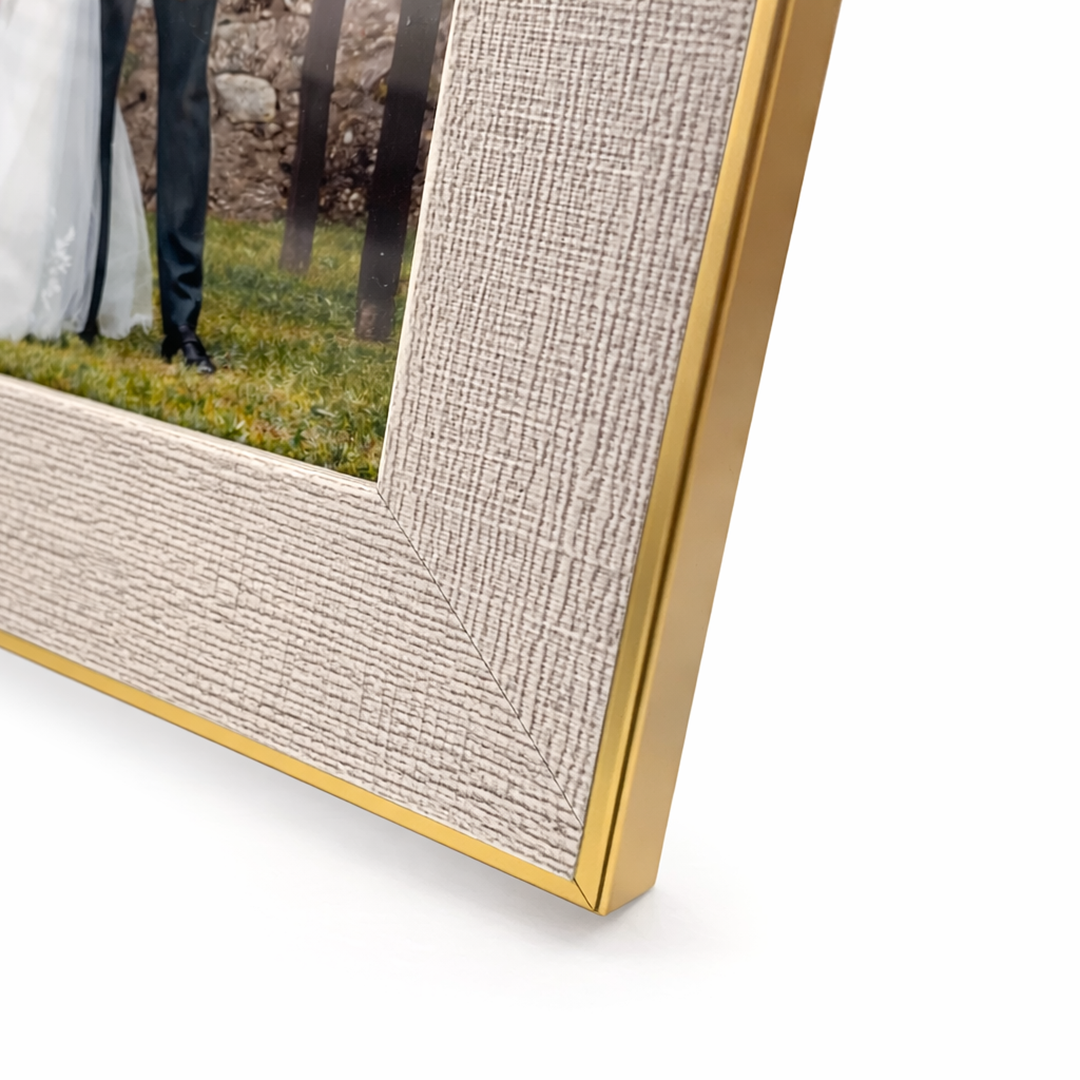 Acabamento: Efeito Dourado e texturizado com perfil fino