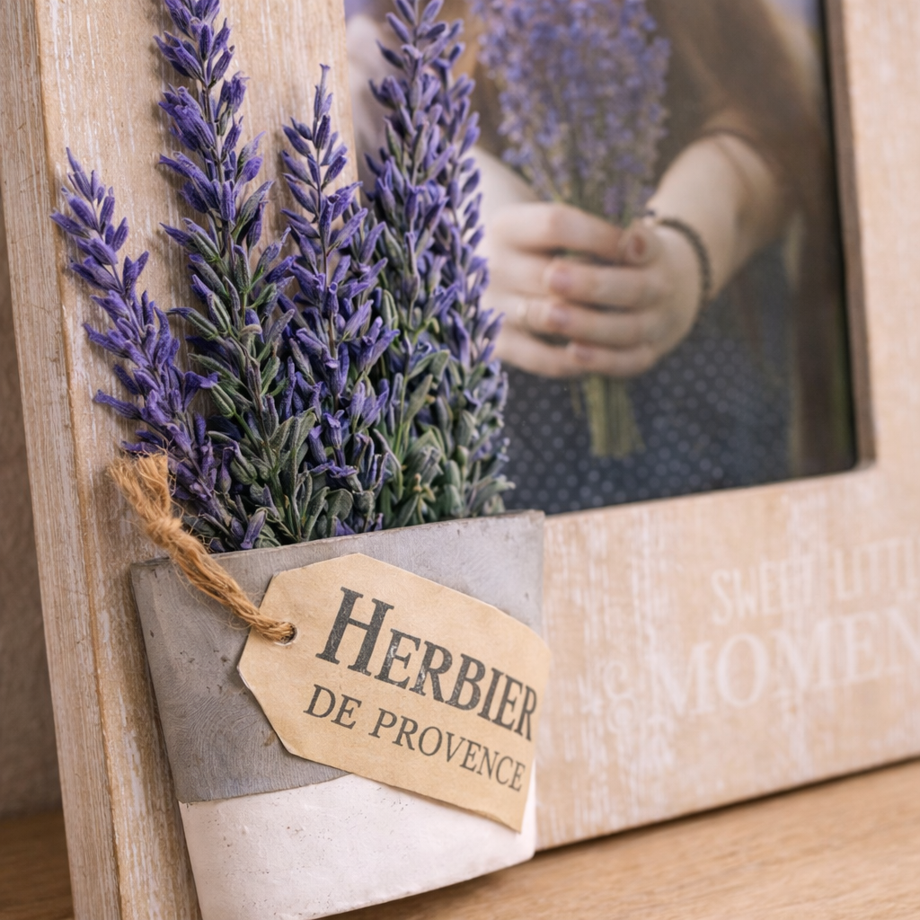 Se gosta de plantas, principalmente Lavanda está moldura é ideal para si. Decore a sua casa com uma moldura que tem Lavanda colada na moldura.