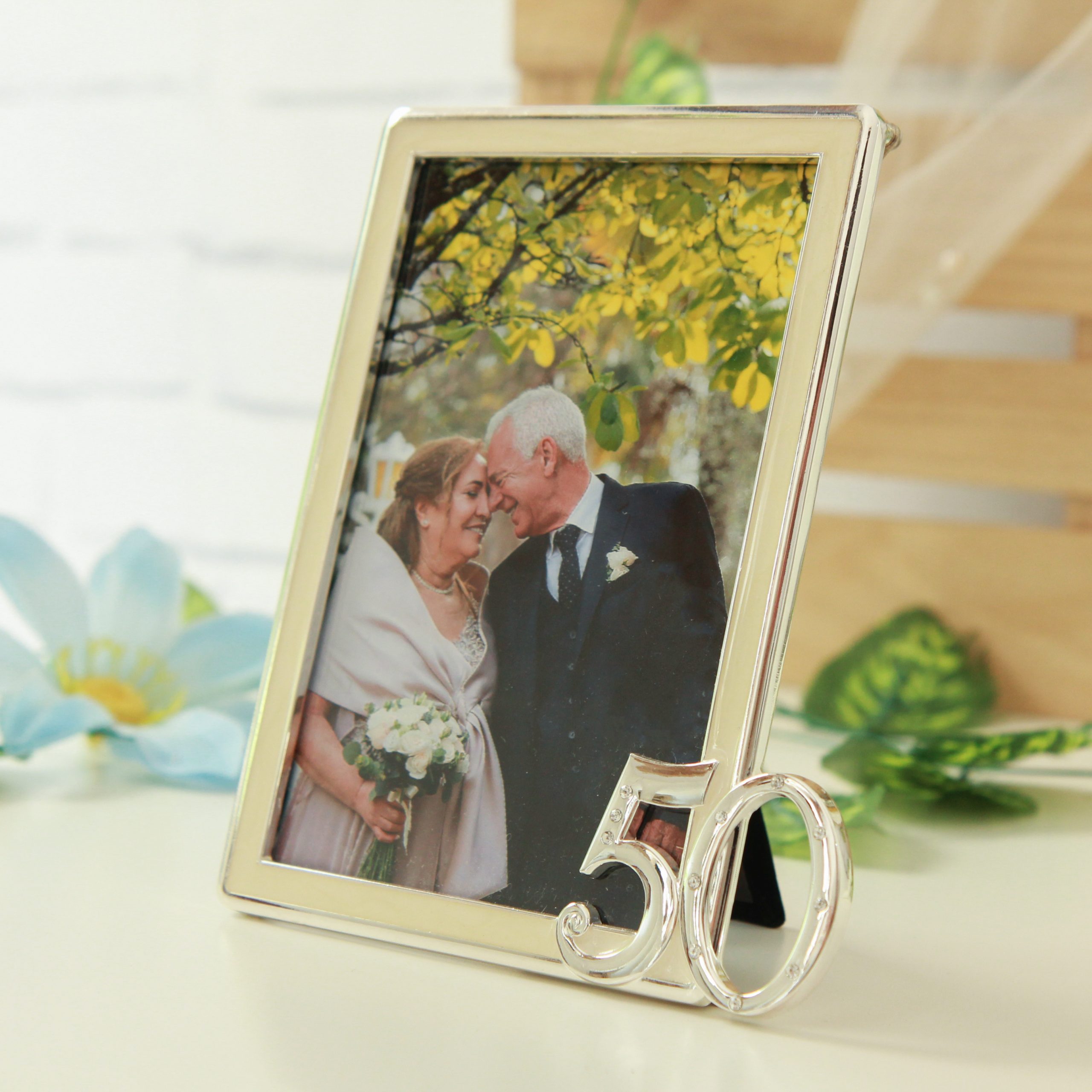 – Moldura de metal com o número 50 com brilhantes suaves e elegantes